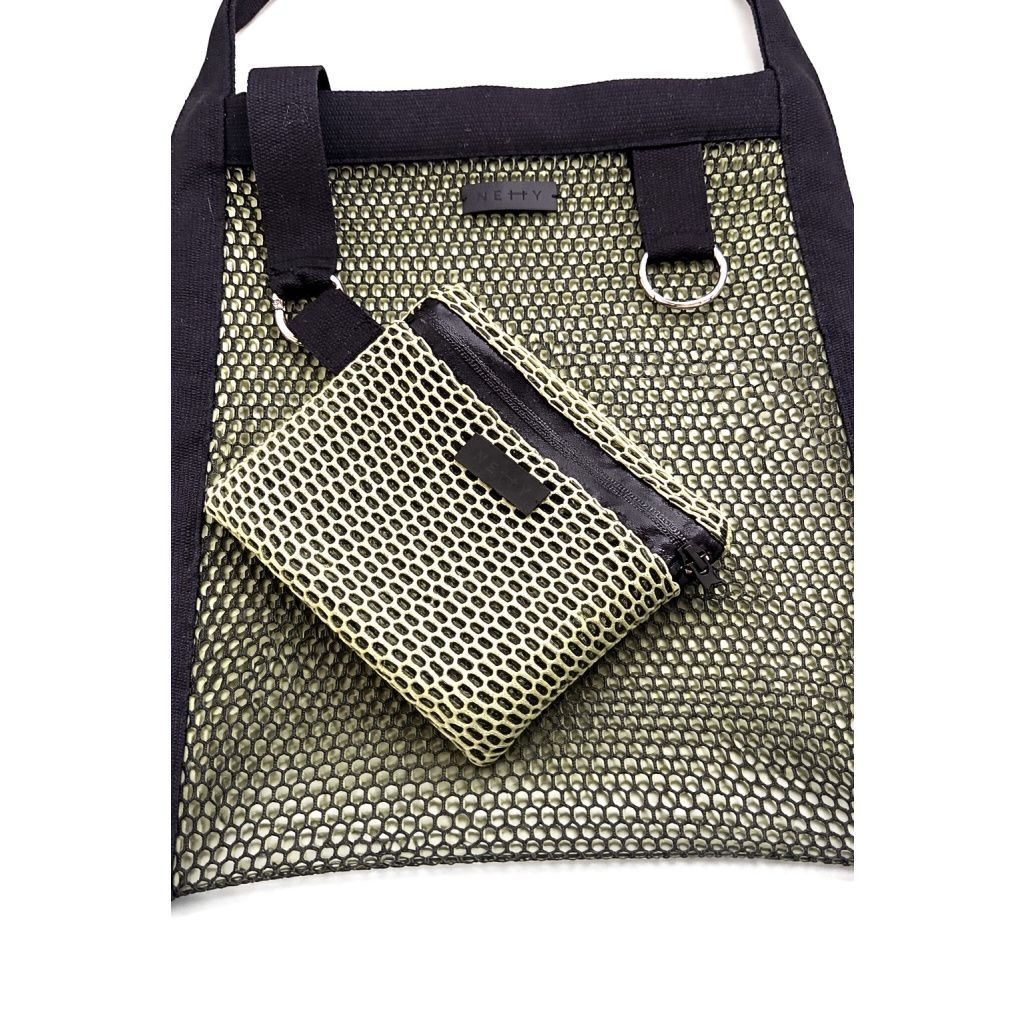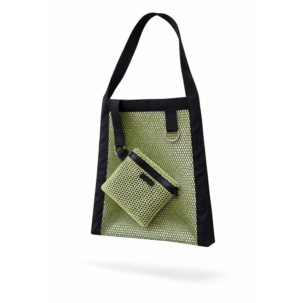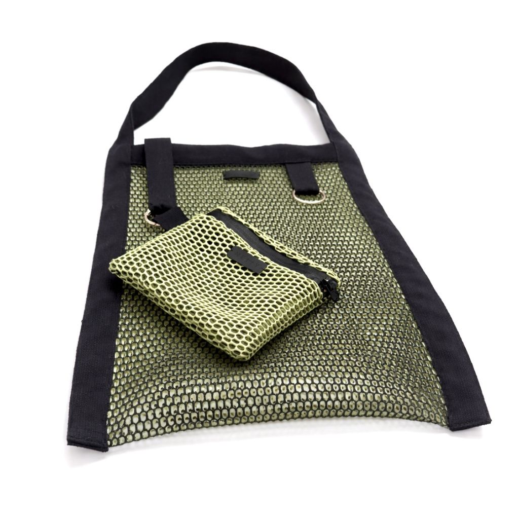 Síťová kabelka z pevné síťoviny, která drží tvar.