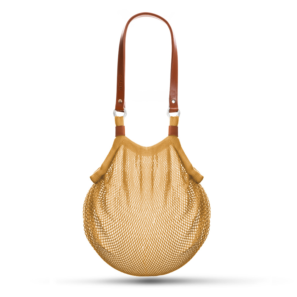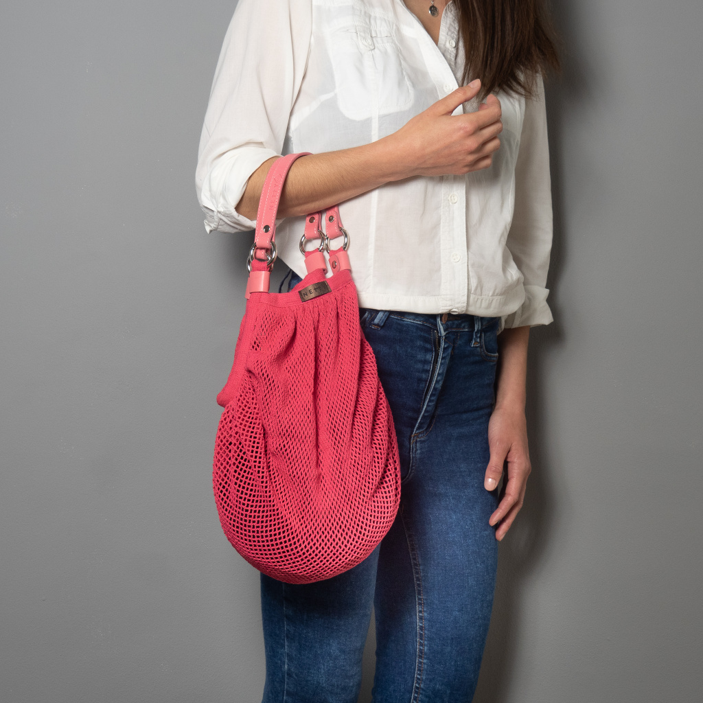 Síťový shopper s koženými uchy BLACK / SHORT